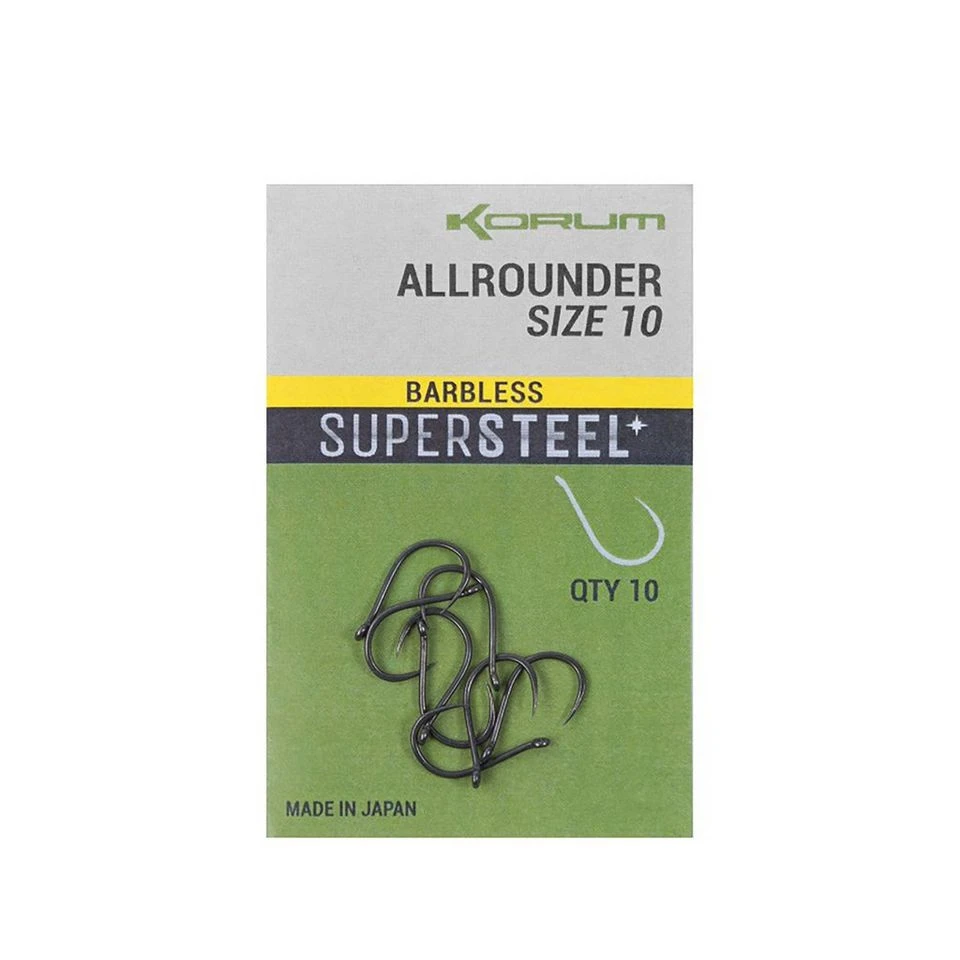 Made up of high-grade Japanese carbon steel, Korum’s Supersteel All Rounder Barbless Hooks that work effectively whether tied directly or when hair rigging with heavier breaking strains of monofilament and fluorocarbon. Sporting chemically sharpened points with a PTFE coating, these hooks are super strong and ensure success by the lakeside.
