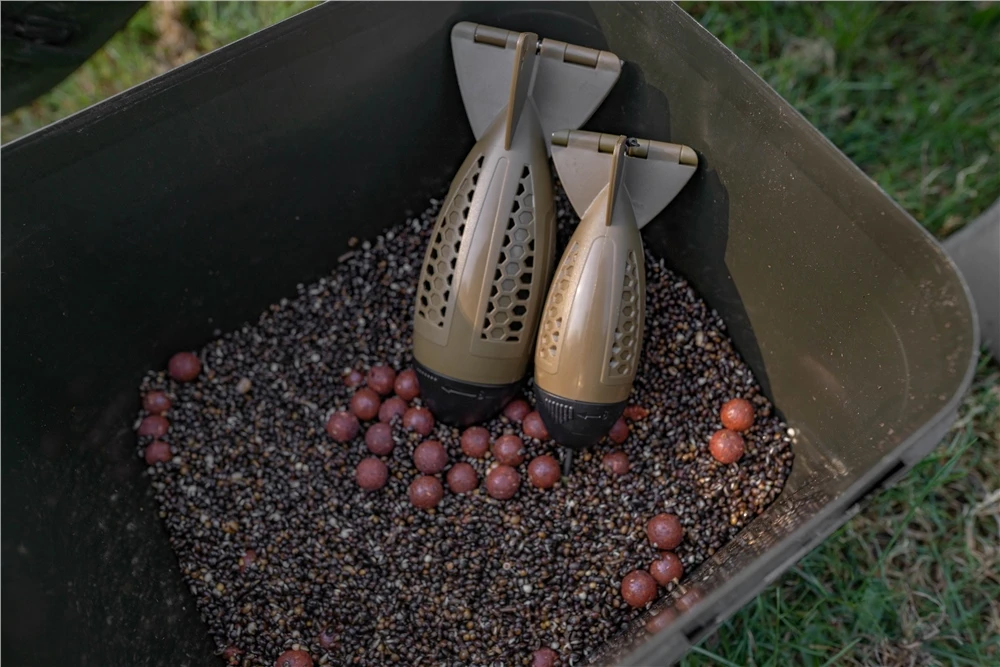 The ultimate Bait Dropper. The Korum Bopper features a unique weighting system, where interchangeable weights can be used to adjust the diving speed and weight of the Bopper. This works with an internal loading port, hidden inside the nose cone. The weights are doughnut shaped and loaded onto the internal stem. They can be locked into place with the small handwheel inside the nose. This gives anglers the ability for the first time to finely adjust the weight of their Bait Dropper. What’s more, the Bopper itself has been designed to be very aerodynamic, with a rocket style shape that flies through the air and the water freely. The fins at the rear stabilize the Bopper, meaning you can be highly accurate. The main cavity section is made of two parts, which are spring loaded to open when the Bopper hits the lakebed or riverbed. The stainless steel pin pushes up inside the body to open the trap door, springing it open to deposit your bait. The body itself has holes in, to make it much easier to retrieve in fast-flowing water. Loading bait inside is easy and due to the shape of the main cavity, you can fit a lot more bait inside easily than on home-made alternatives. There are two sizes of Bopper to suit different requirements and each version can be used with or without weighting inside, should you require. Having the the ability to make it heavier if the flow-rate is much higher is a game changer and is sure to suit lots of river and feeder anglers around the World. Standard version comes with a 30g base weight and x 2 additional 30g weights. XL version comes with a 60g base weight and x 3 additional 30g weights. A dedicated Bopper Baiting Up Rod and Bait Up Braid are also available.