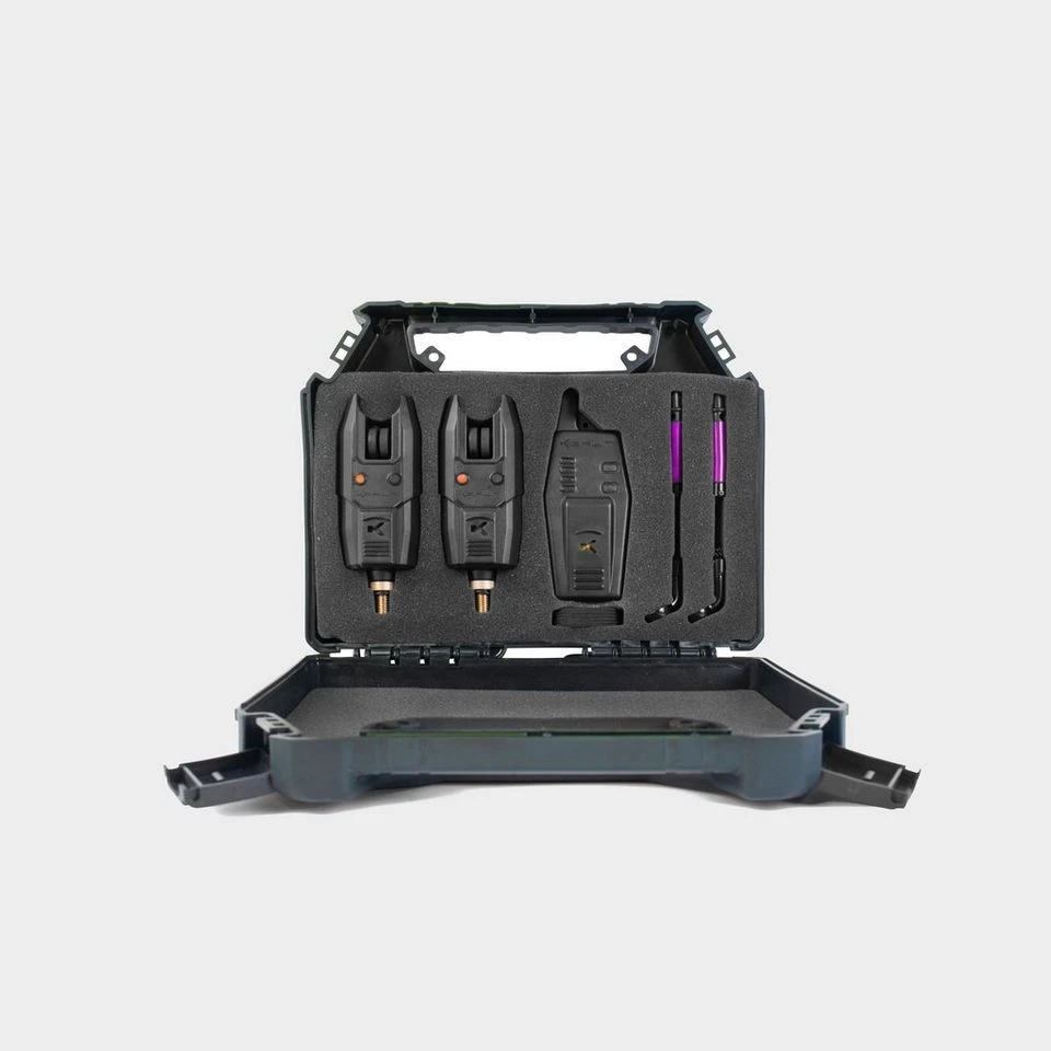 Containing two remote alarms, a wireless bite alarm receiver and two bright purple bite indicators, this set offers everything you need in an alarm set up. Compact, rugged and reliable, this set won’t let anglers down.
