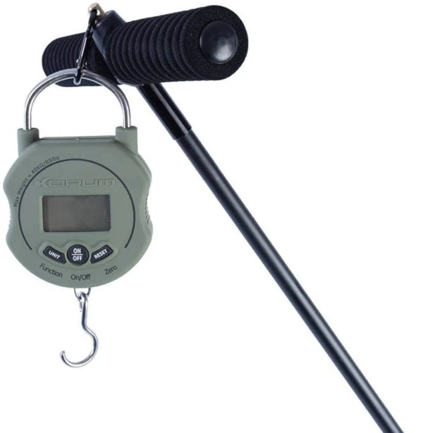 This versatile product is an excellent, compact weigh sling that can be used in many ways. The product can be used as a standard weighing rod, but it also features a thread to attach the rod to a landing net handle so you can better keep the weigh sling clear of the bottom for more accurate weighing. Comes with a carabiner and soft touch foam