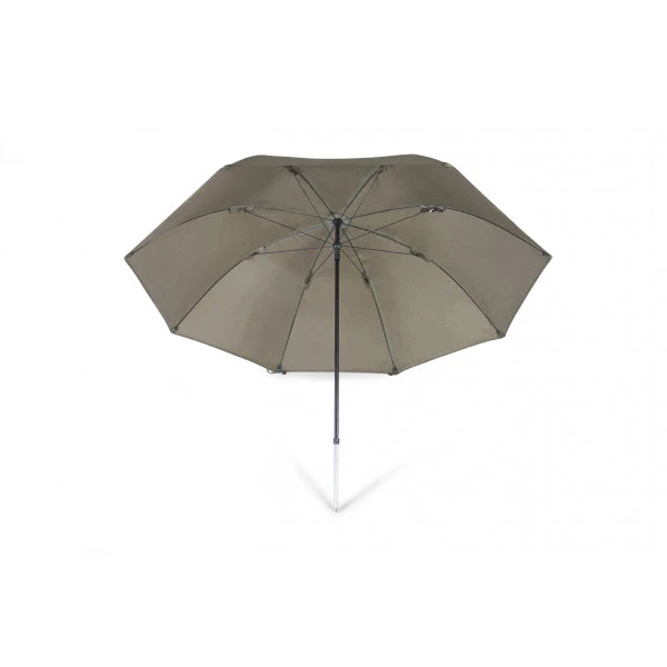 Korum’s Super Steel Brolly is built on a strong and durable steel frame with which the brolly can be used in a normal position, according to traditional style. The central umbrella pole can also be turned up in an angled position. In this way, a super-stable inclined position is achieved. Furthermore, pegs are included to increase stability if needed. This fishing umbrella is lightweight and very strong. The canvas is made of 210D nylon material, fully taped, sealed and reinforced at all possible wear points. The inner stem is made of extra thick-walled aluminum, which provides ruggedness and durability.