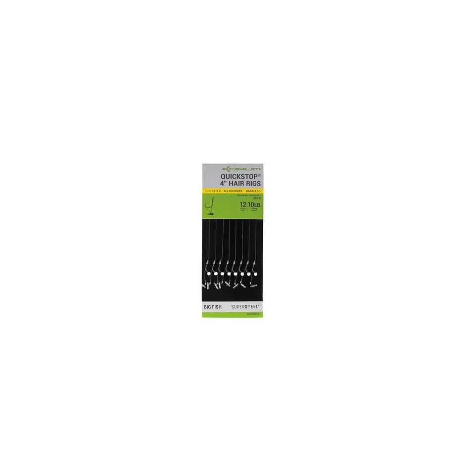 These 4 inch ready-tied rigs feature a barbless Supersteel hook (size 12), forged from Japanese carbon steel and PTFE coated for extra durability in the water. They’re each tied with Korum’s own abrasion-resistant line, with strong loop knots and clear Quickstops for quick rig changes when sat by the bank.