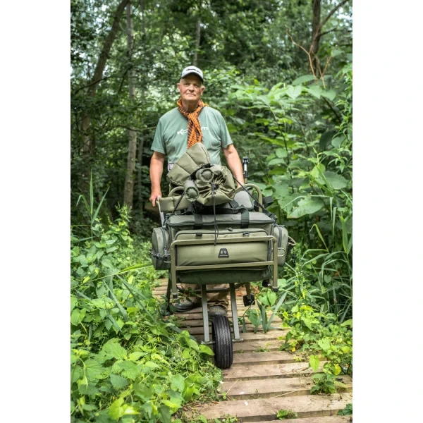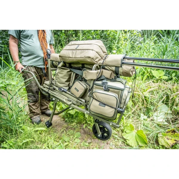 The Korum Transition Compact Barrow is one of the most portable and efficient barrows to date. Perfect for the angler who wants to transport their kit quickly and effectively. Because the weight can be placed over and beyond the wheel, the weight on your arms when lifting the barrow is greatly reduced. The front loading area is designed to easily carry most fishing chairs and carryalls, while the main loading area can accommodate your main bags and unhooking mats. Moreover, the barrow also folds very compactly. This means that this transport cart takes up minimal space in your car, garage or shed. The reinforced wheel is custom made which ensures maximum maneuverability while also reducing overall weight. If you are looking for a compact barrow that is easier to push than the one you have used before, then look no further.