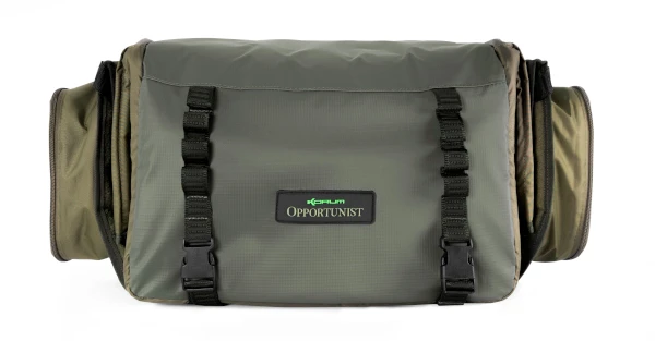 The Opportunist Mat Bag by Korum is an unhooking mat and bag in one! This lightweight carry bag features two removable outer pockets, ideal for storing various accessories. The water-resistant main compartment folds out into an unhooking mat. The bag is made of Supa Lite 150D Polyurethane and PVC and is finished with a padded, waterproof shoulder strap.